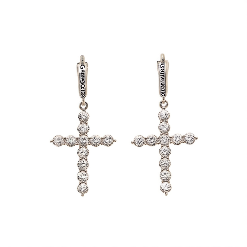 Golden Cross Diamond Earrings White Gold Plated Round Brilliant Cut Natural Diamonds Religious Women's Jewelry E3567