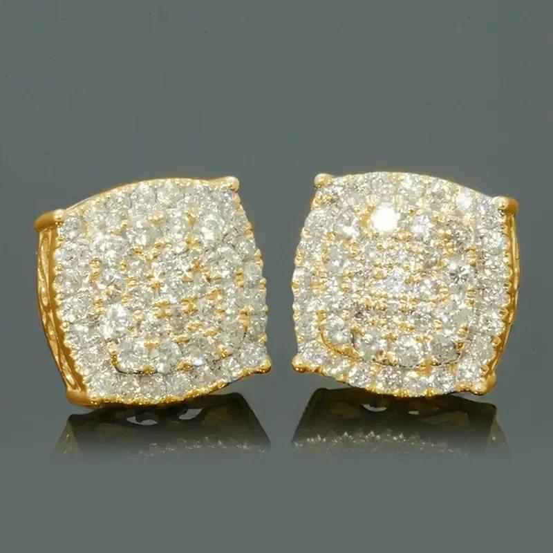 Orecchini con diamanti dorati a taglio cuscino per donna, stile classico, diamanti naturali E2725