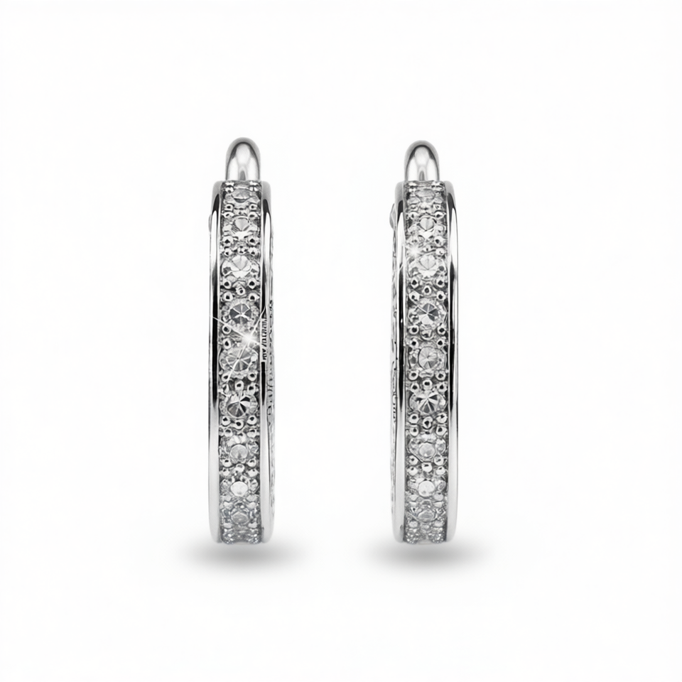 Orecchini a Cerchio con Diamanti Dorati in Oro Bianco, Taglio Brillante Rotondo, Colore G, Diamanti Naturali, Classici da Donna per Uso Quotidiano