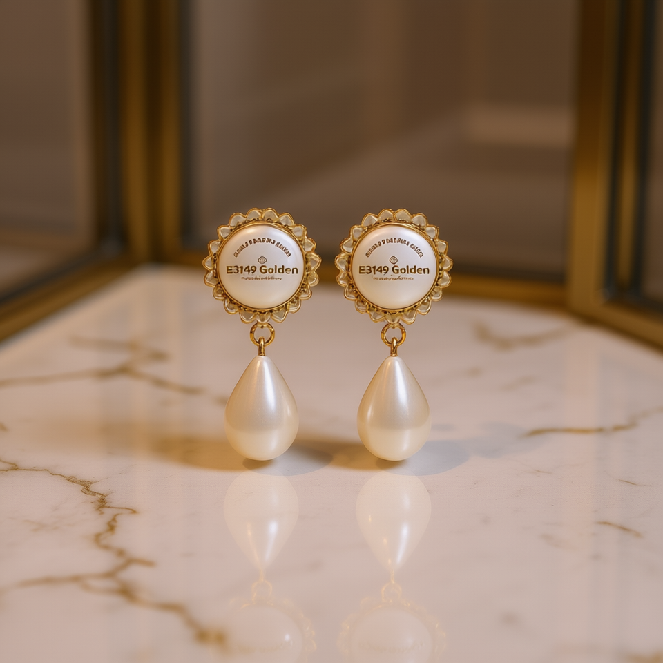 Golden E3139 Drop Earrings Cultured Pearl Water Drop Shape Bezel Setting Women's Classic Everyday Wear Jewelry
