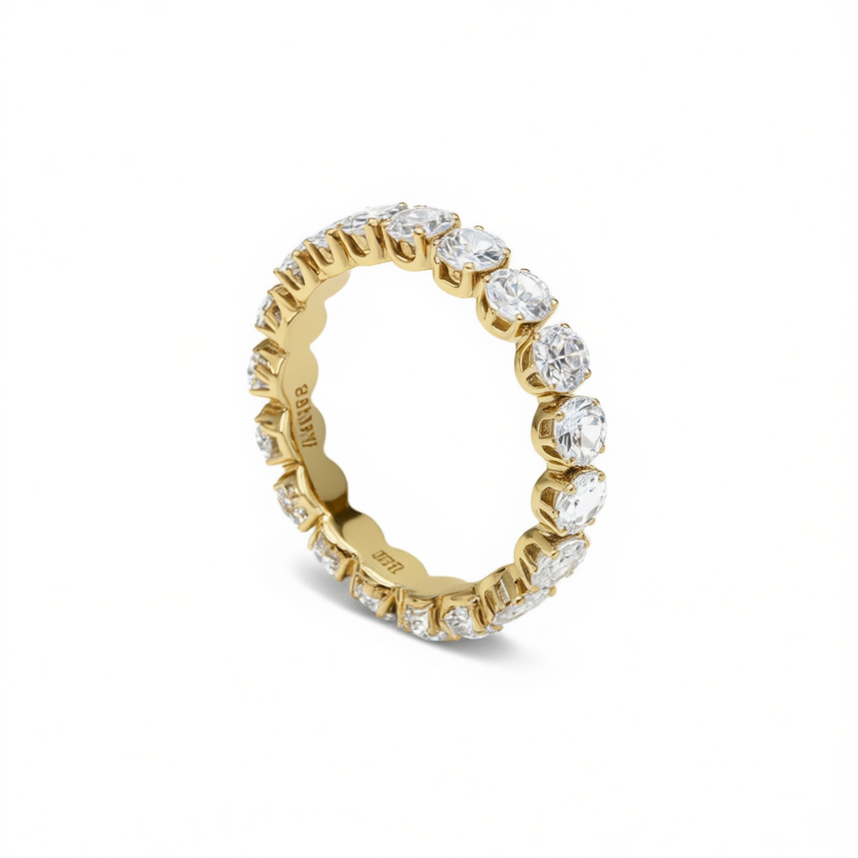 Golden Eternity Band Ring Women's 18K Gold Plated Round Diamond Pave Setting Classic Wedding Engagement Ring