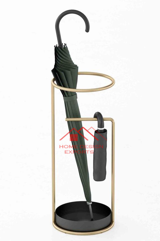 Golden Finished Black Wooden Base Umbrella Stand Attractive Modern Design Home Decor Floor Umbrella Stand