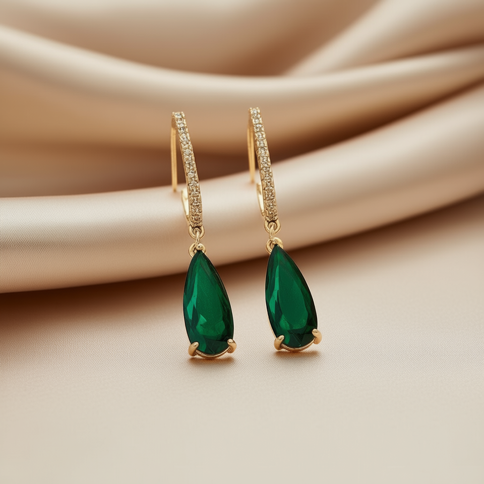 Golden Green Gemstone Drop Earrings Pear Cut Claw Setting Women's Party Classic Fashion Jewelry