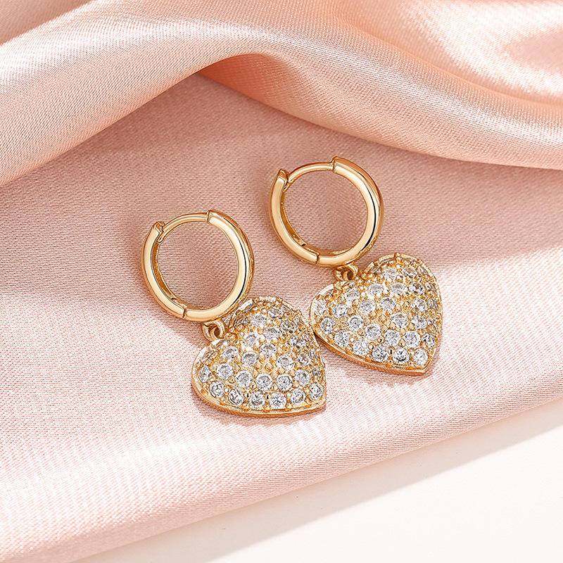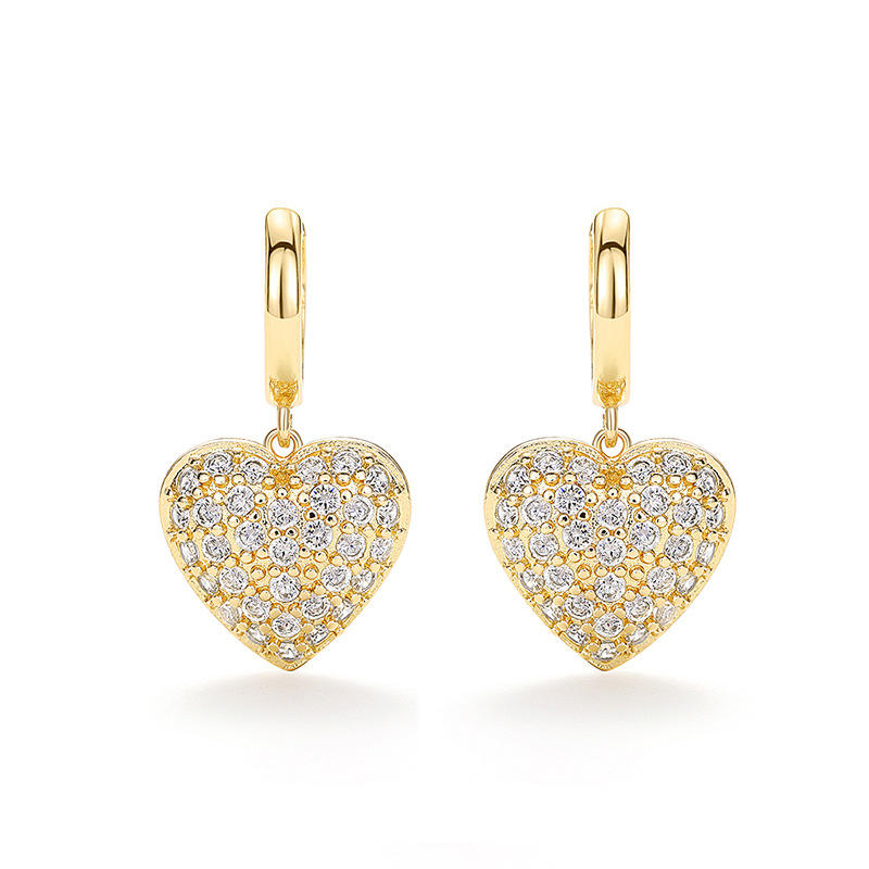 Golden Heart Diamond Earrings 18K Gold Plated Natural Diamonds Romantic Style Women's Everyday Wear Jewelry