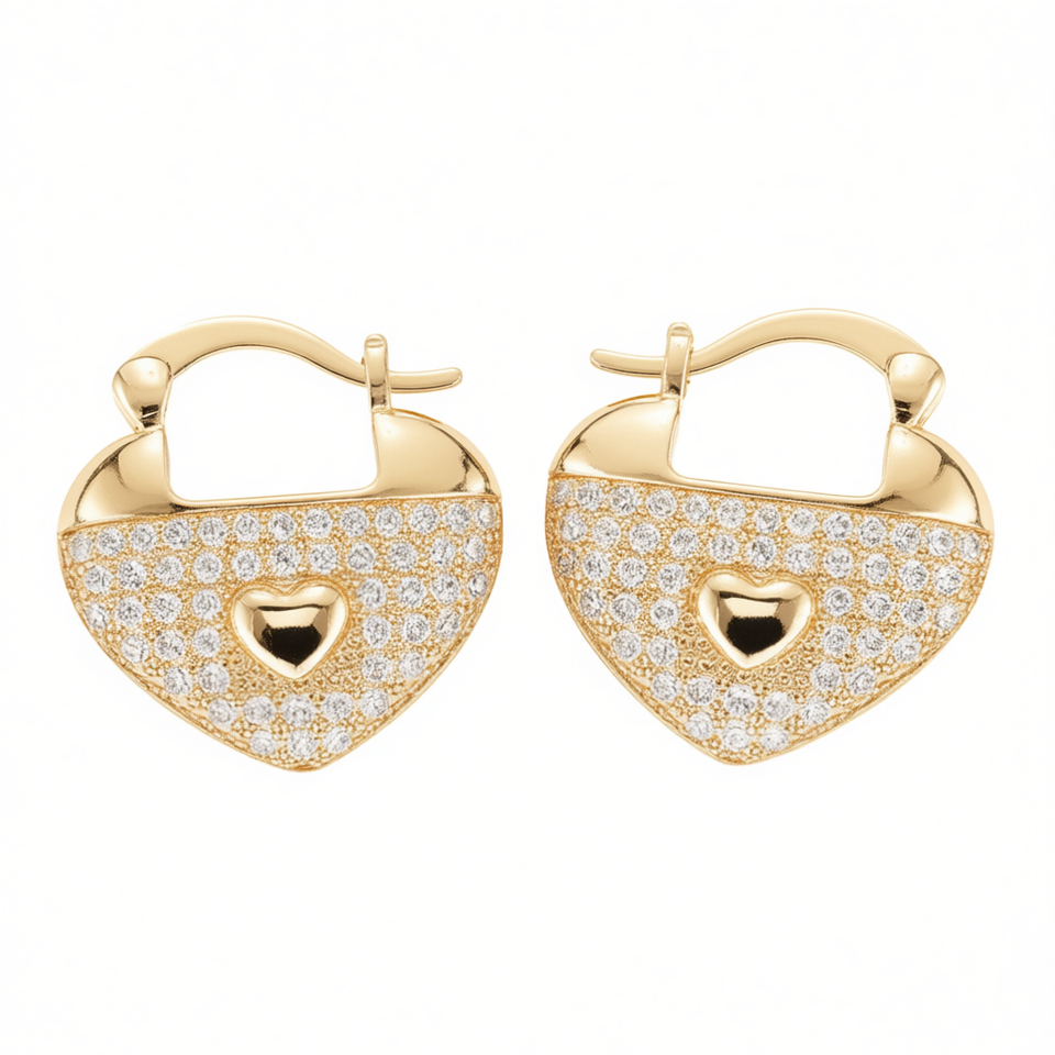 Golden Heart Huggie Earrings 18K Gold Filled Crystal Rhinestone Micro Pave Women's Romantic Everyday Wear Jewelry