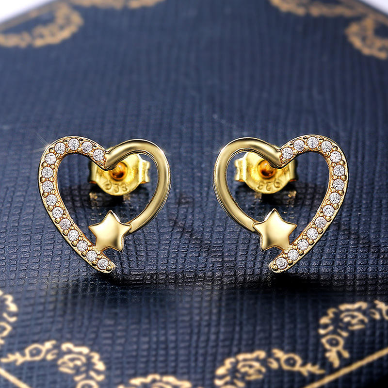 Orecchini a forma di cuore dorato con strass di cristallo a forma di stella per le donne, graziosi gioielli alla moda, regalo in lega placcata oro 18 carati