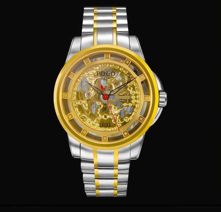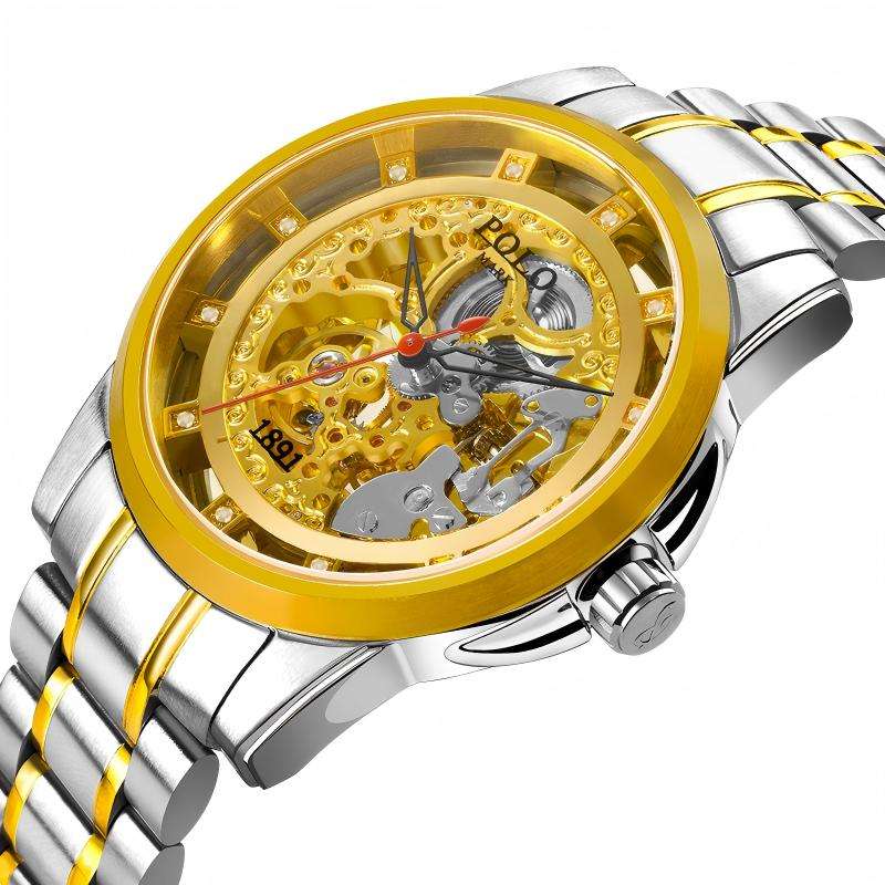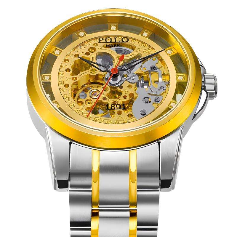 Orologio meccanico timoniere dorato con Display a quadrante con puntatore diamantato autentico