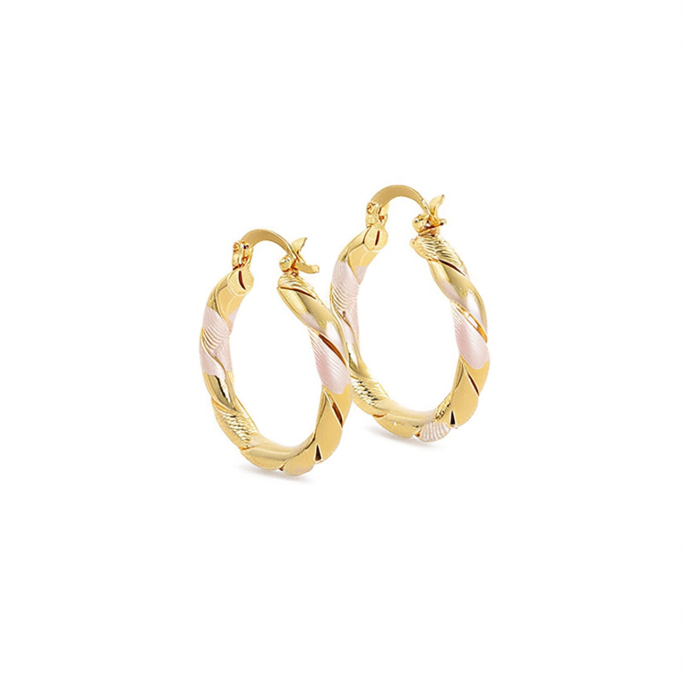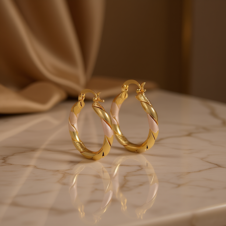 Orecchini a Cerchio Dorati in Oro Massiccio 18K, Design Intrecciato, Stile Classico, Gioielli da Donna per Uso Quotidiano
