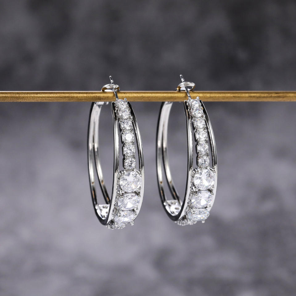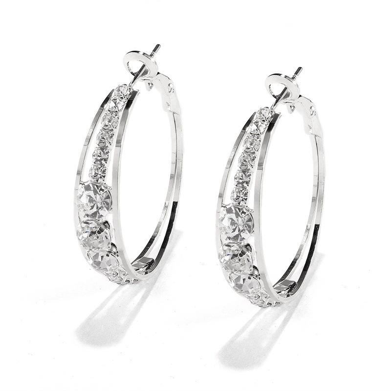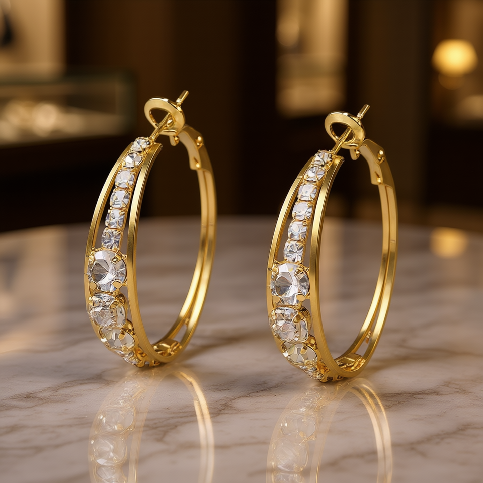 Orecchini a Cerchio Dorati con Cristalli e Strass, Placcati in Oro 22k, Gioielli Classici da Donna per Uso Quotidiano