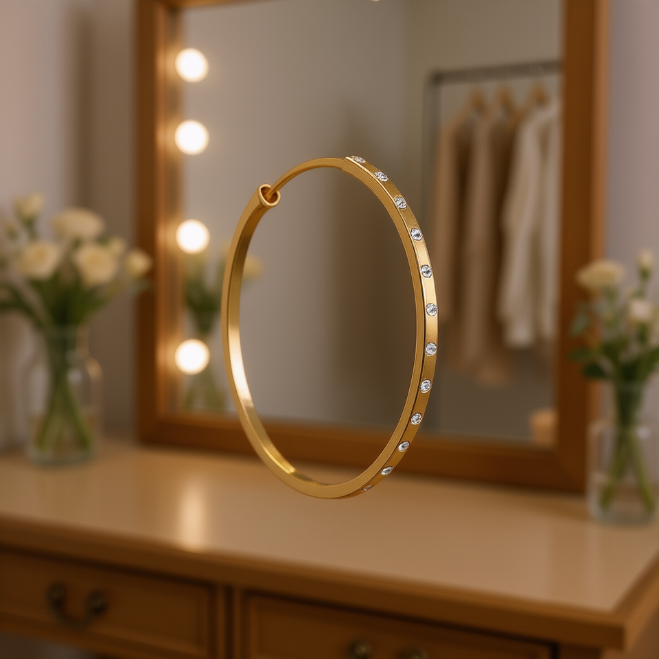 Golden Hoop Earrings With Crystal Rhinestones Bezel Set Classic Style For Women Fashion Jewelry Alloy Gold Plated