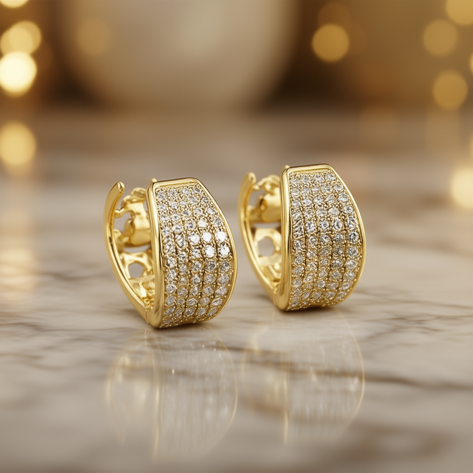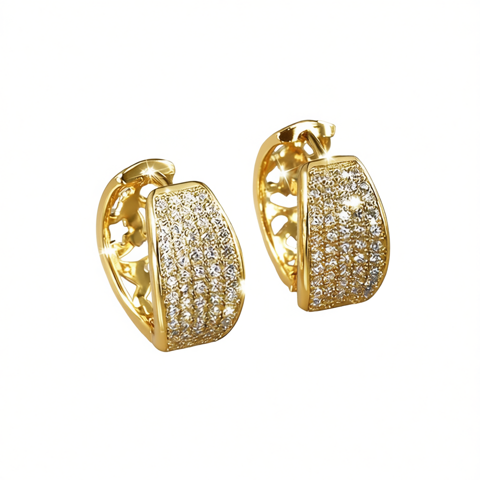 Golden Huggie Earrings Women's 18K Gold Plated Crystal Rhinestone Micro Insert Geometric Luxury Everyday Wear