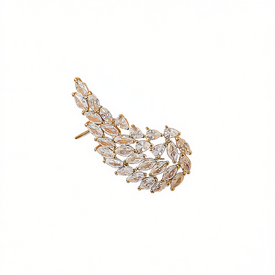 Golden Leaf Cuff Earrings With Marquise Crystal Rhinestones For Women Party Romantic Style Fashion Jewelry Gold Plated Alloy
