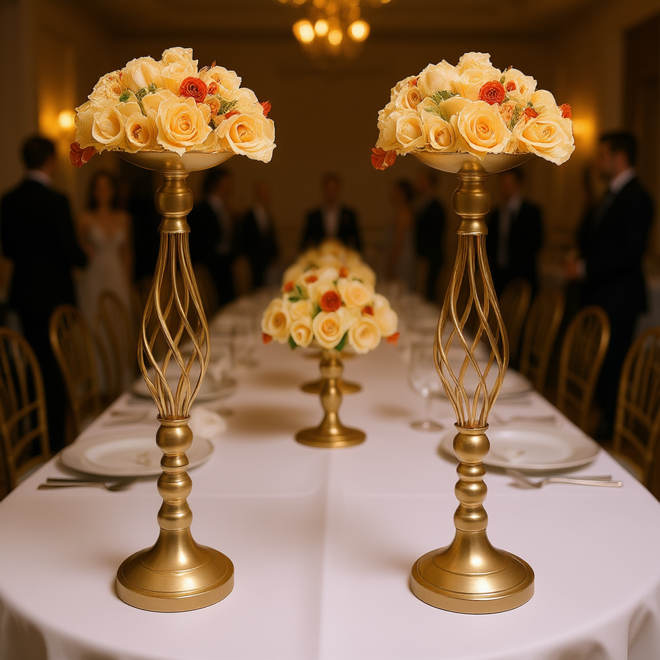 Golden Metal Floral Stand 58cm Wedding Centerpiece Table Decoration Luxury Style 20 Pieces