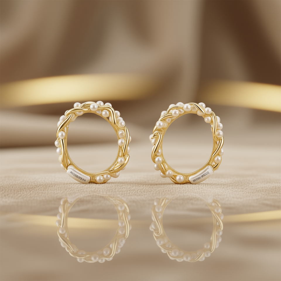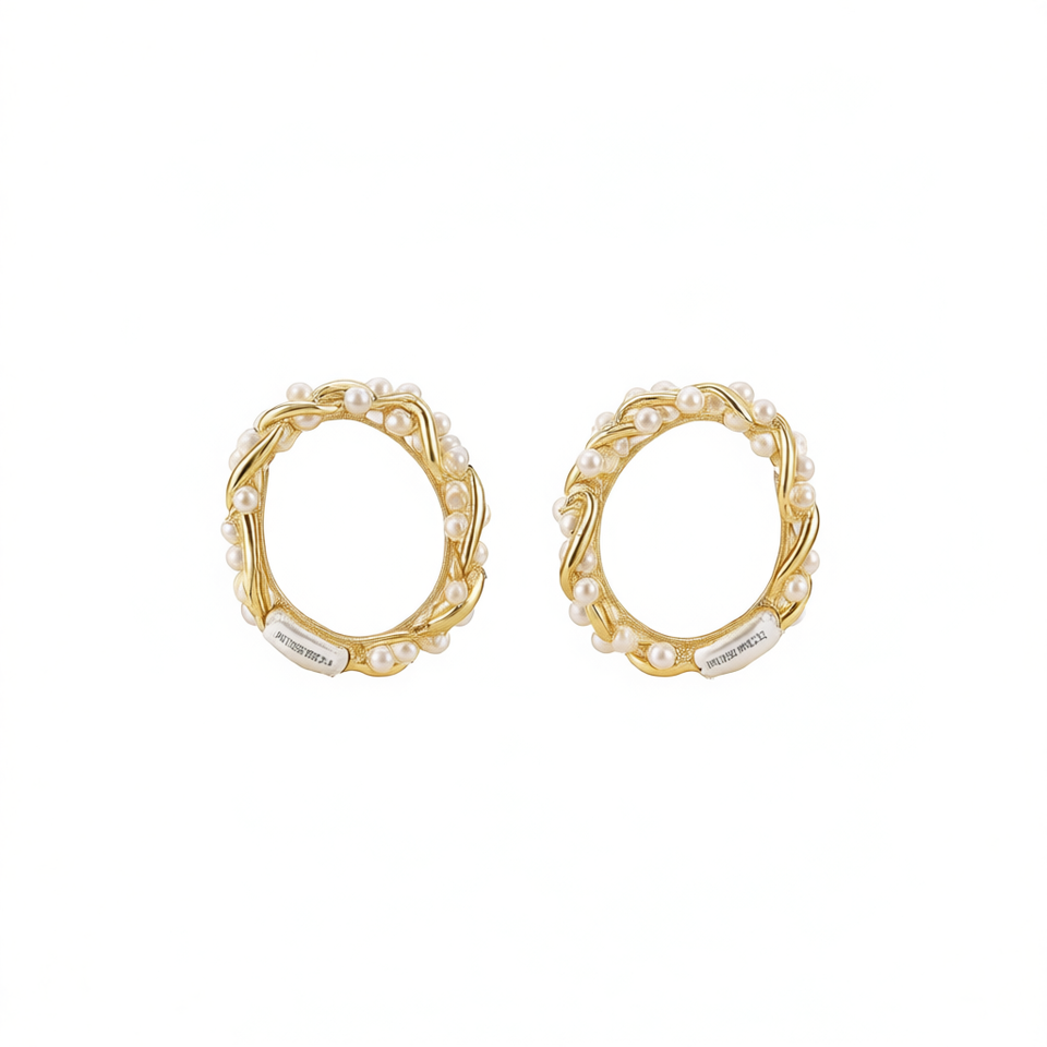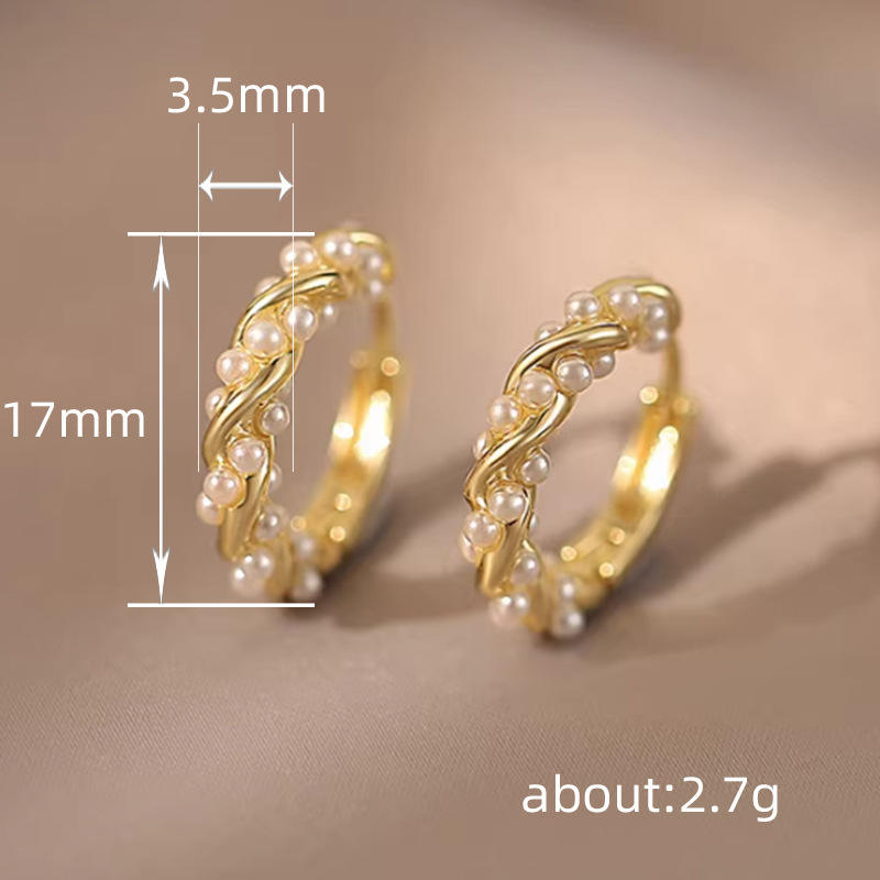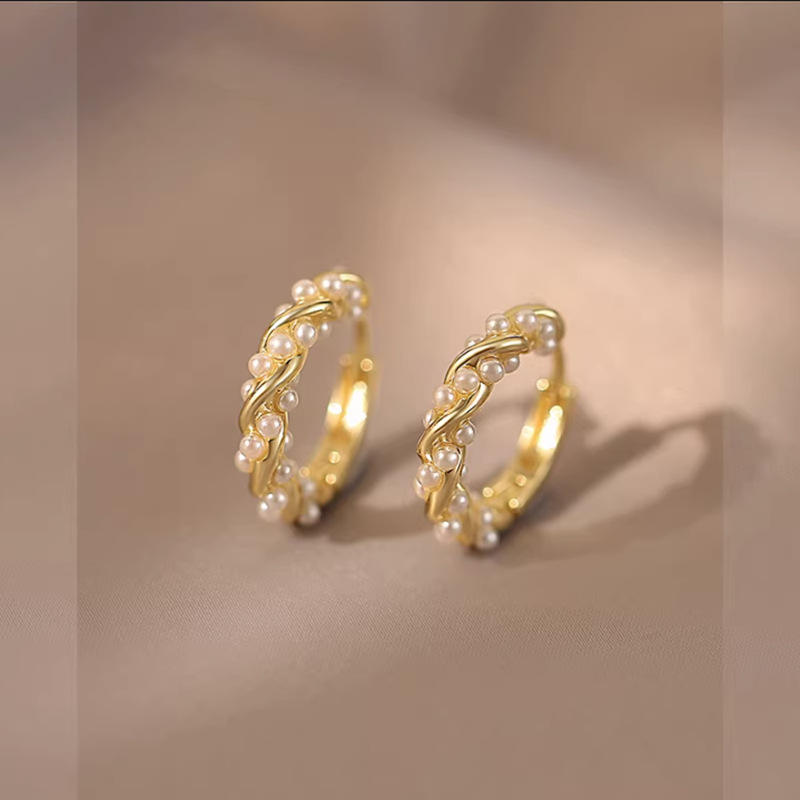 Golden Pearl Hoop Earrings 18K Gold Plated Faux Pearl Round Classic Women's Everyday Wear Jewelry