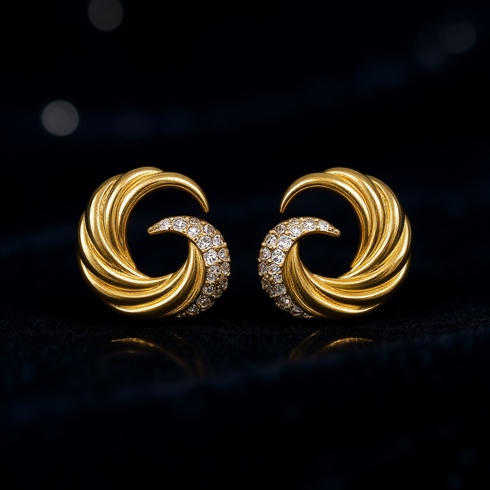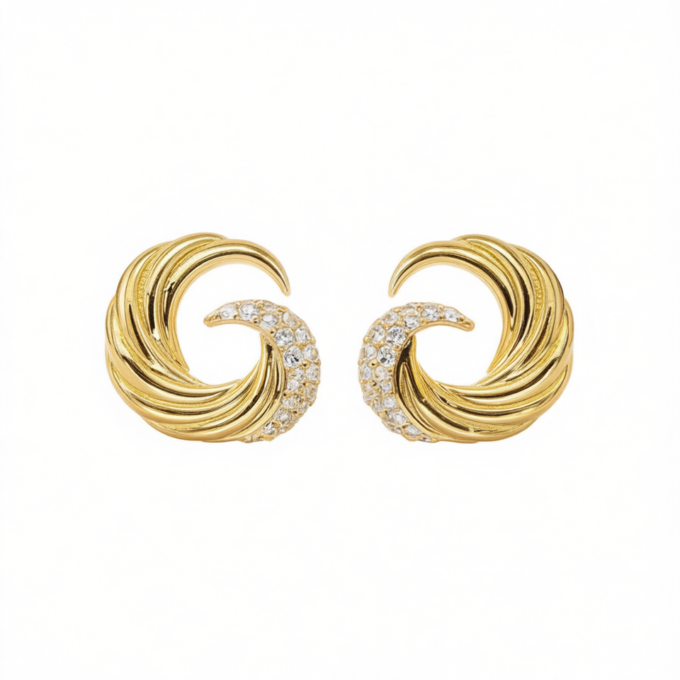 Orecchini a Perno Dorati E3336 con Cristalli e Strass, Lussuosi per Uso Quotidiano Femminile