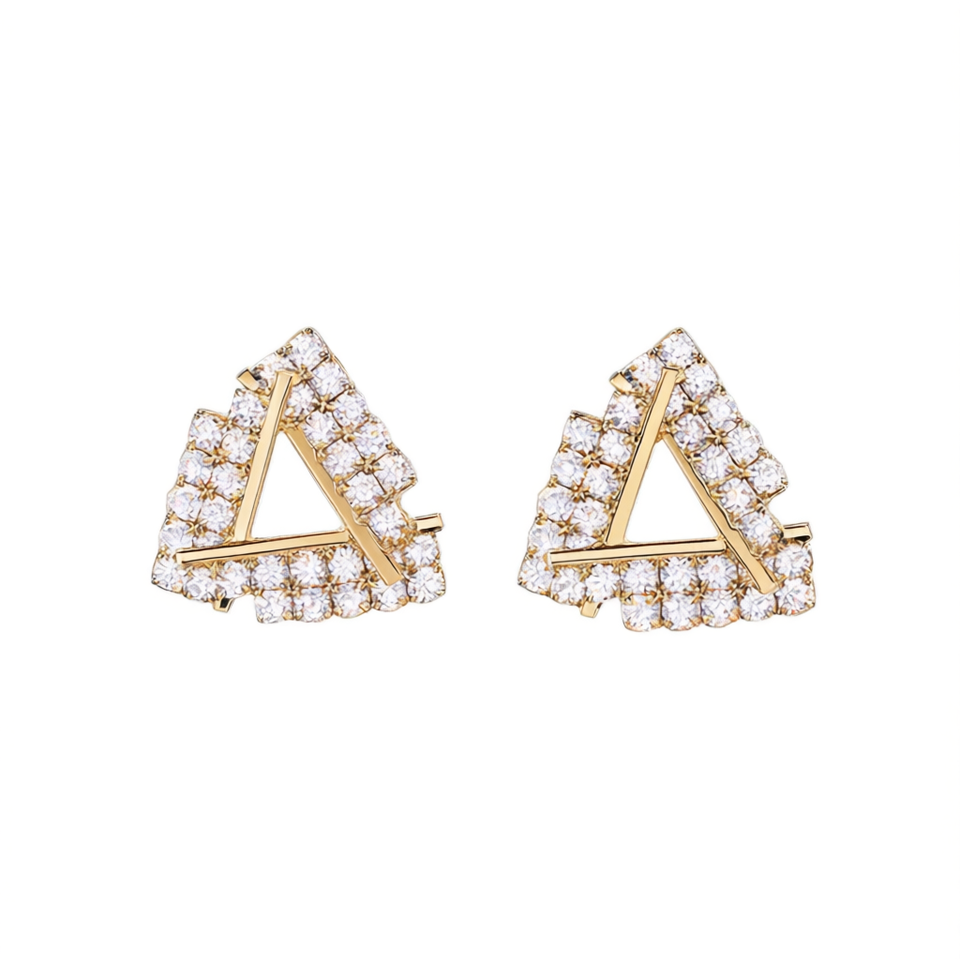 Orecchini a triangolo dorato con intarsio di cristalli per donna, da indossare tutti i giorni, design geometrico, micro inserti, gioielli placcati in oro