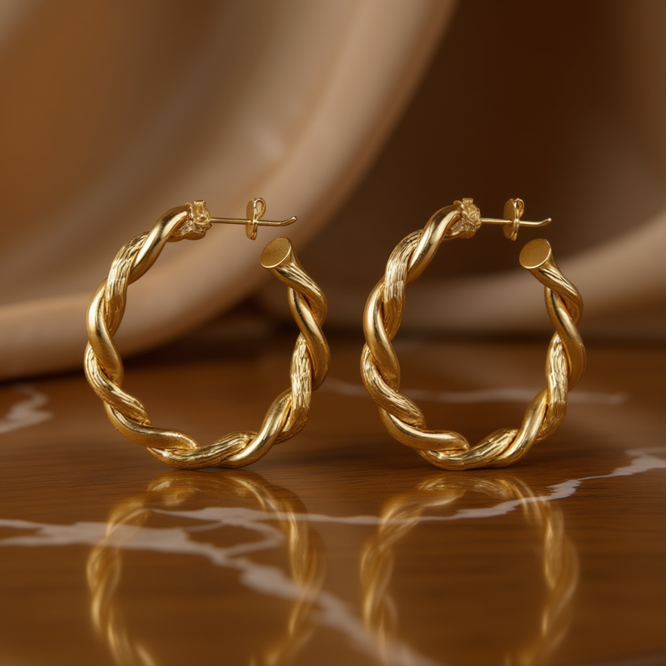 Orecchini a Cerchio Intrecciati in Oro Massiccio 18K, Stile Classico Unisex per Uso Quotidiano
