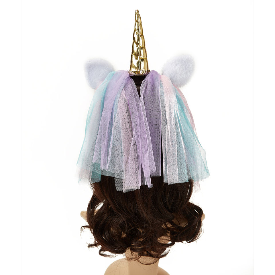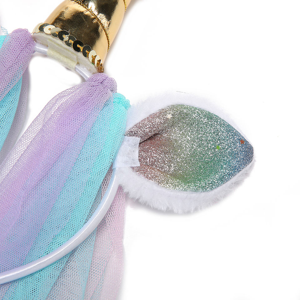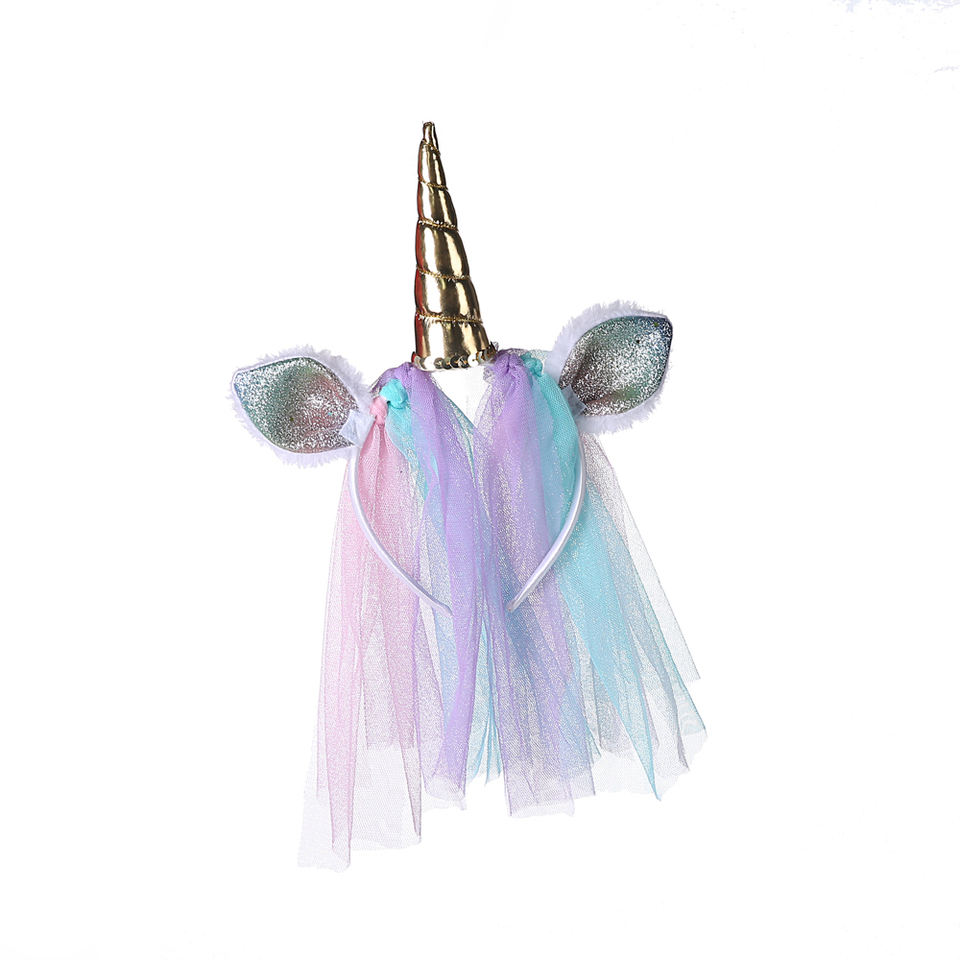 Golden Unicorn Glitter Headband with Tulle Colorful Veil Hair Clip Party Hair Accessories Elegant Gold Accessory
