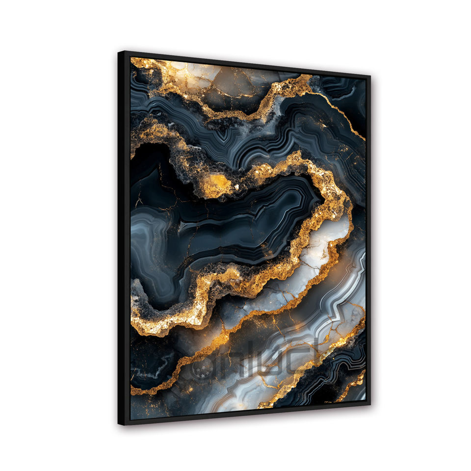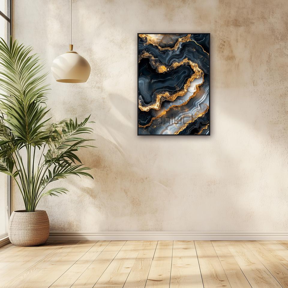 Vene Dorate nel Marmo Notturno: un Lussuoso Capolavoro Astratto, Stampa Artistica Incorniciata, Dipinto da Parete