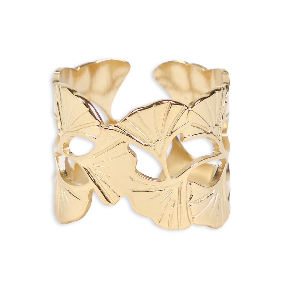 CUCOCUCA YXQ R47 Anello regolabile in acciaio inossidabile placcato oro con design a forma di foglia, dal design intramontabile per tutte le occasioni