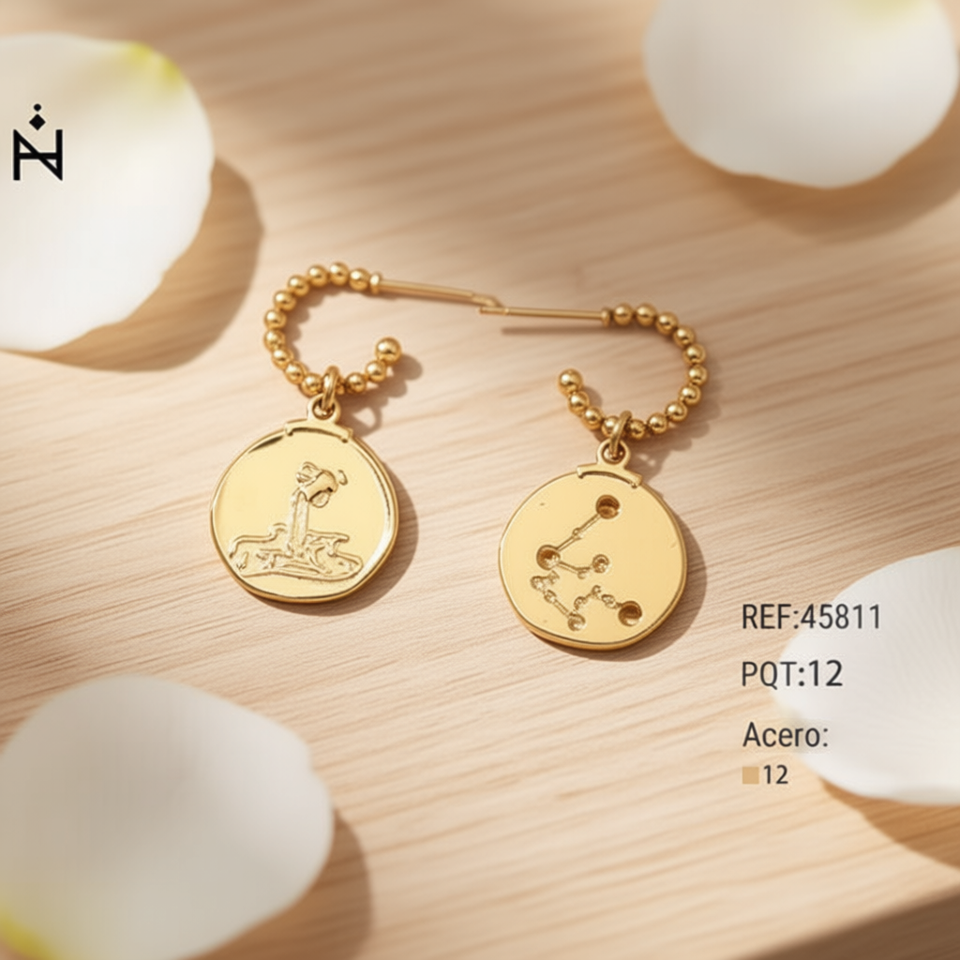 Orecchini con segno zodiacale dorato con catena di perline e pendente circolare Acero 12