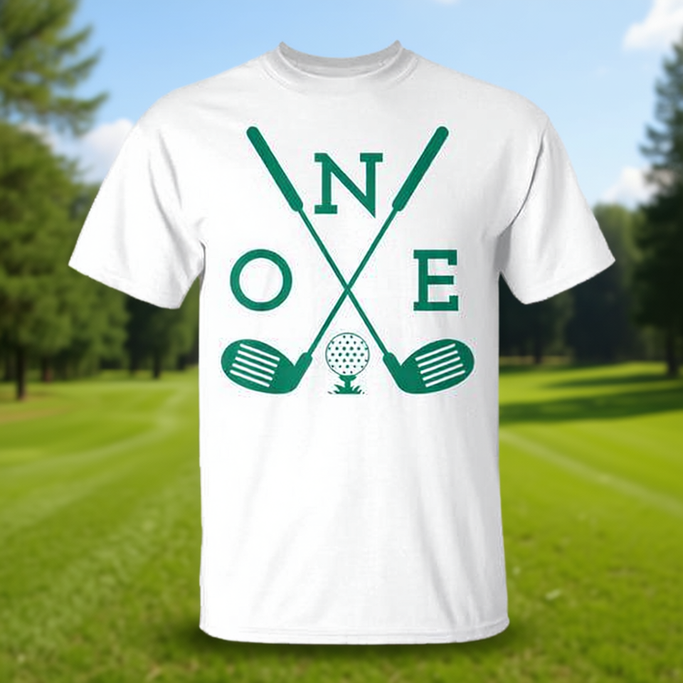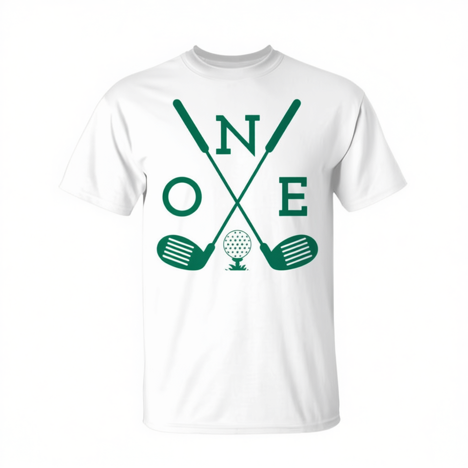 Maglietta Promozionale per Compleanno a Tema Golf per Bambini e Bambine, Design 'Hole in One' per il Primo Compleanno