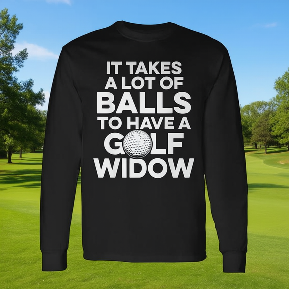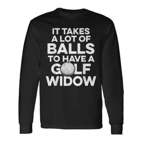 T-shirt a maniche lunghe Golf Widow per moglie golfista con design a palline