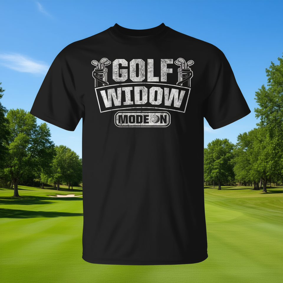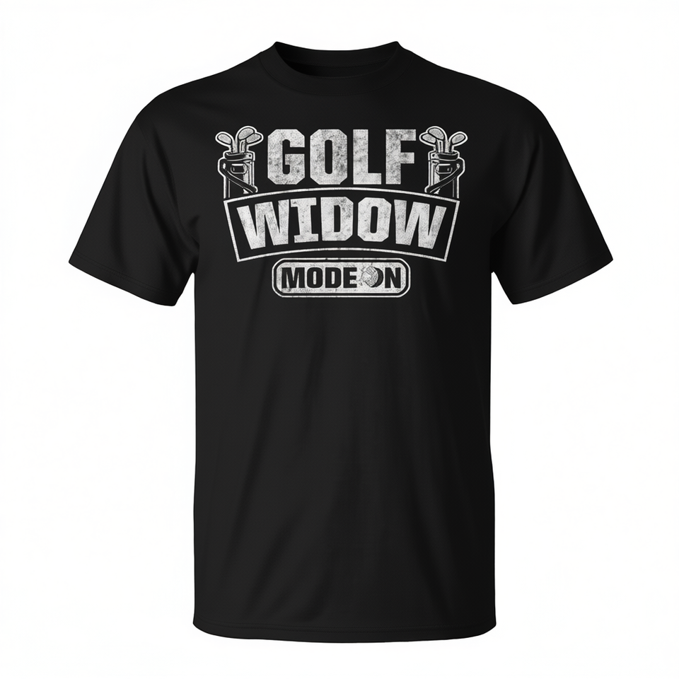 T-shirt Golf Widow Mode On nera unisex per adulti taglia dalla S alla XXL