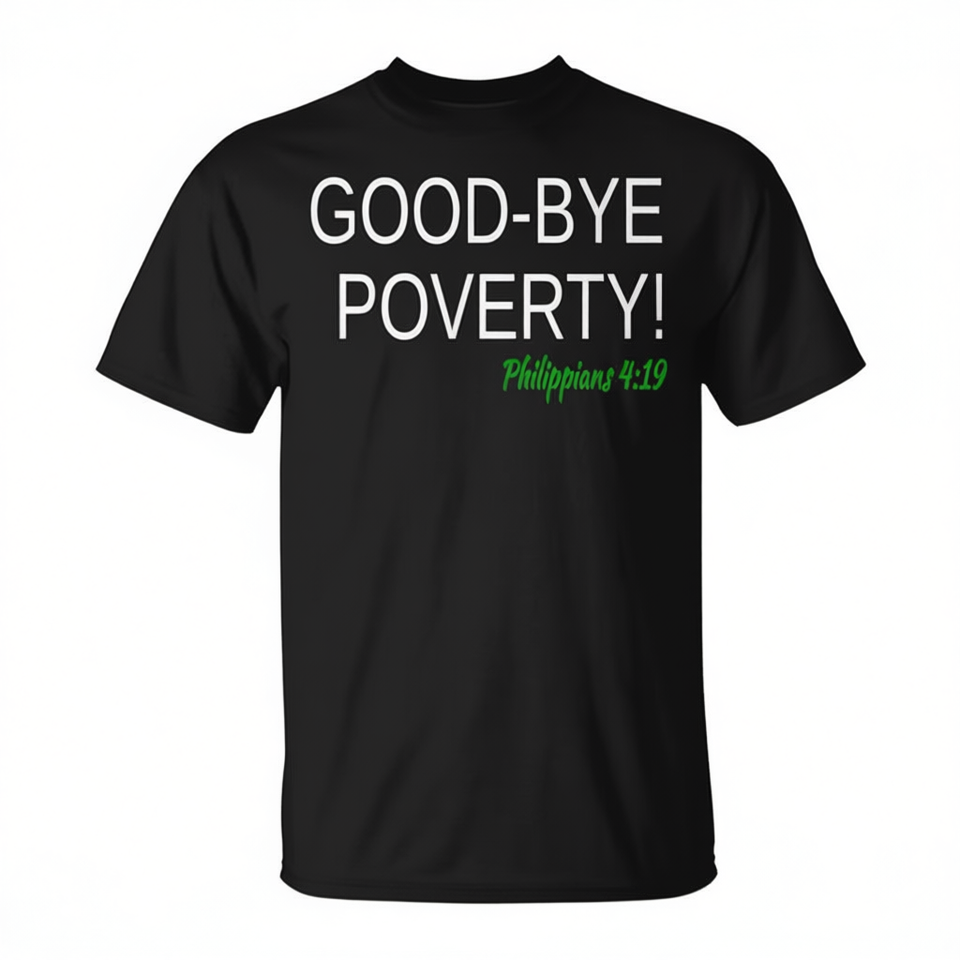 Good Bye Poverty Christian T-Shirt Philippians 419 Nero Taglia unisex per adulti