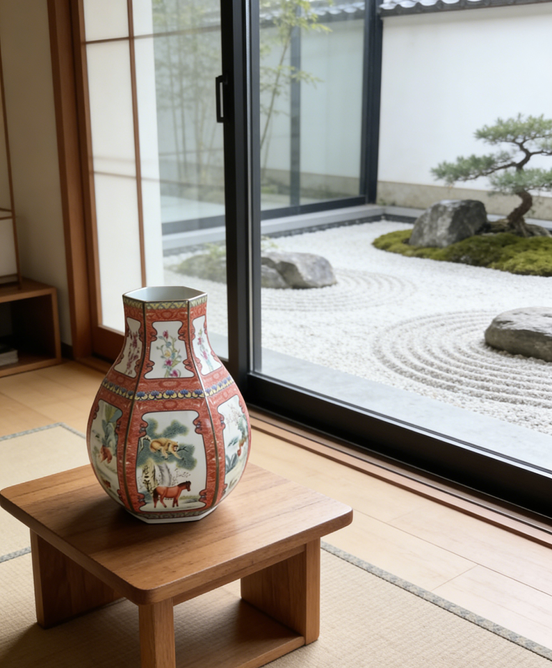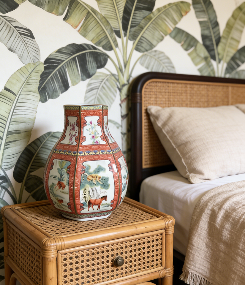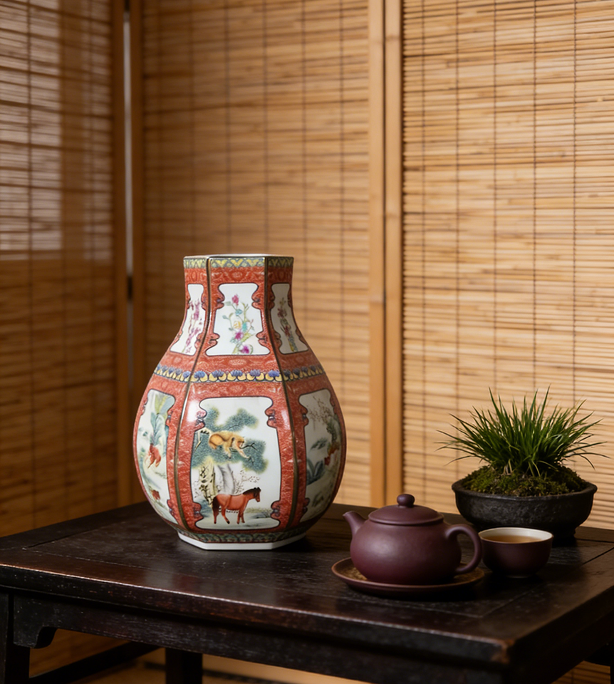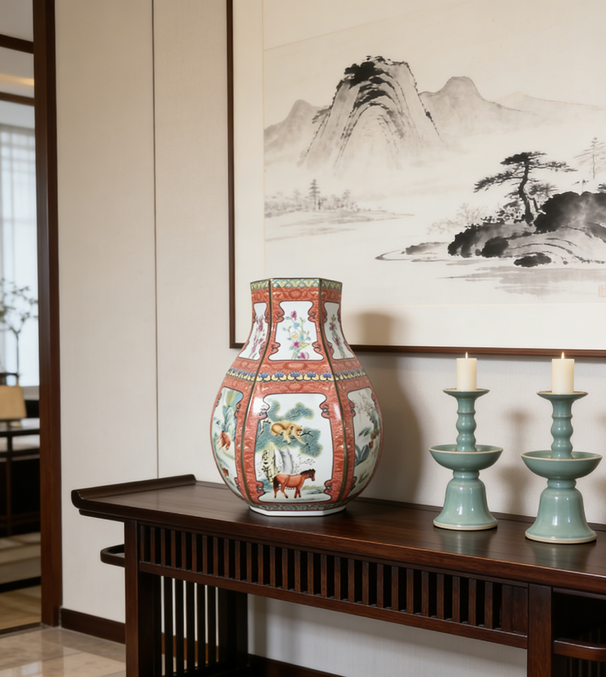 Ottimo Vaso in Ceramica Smaltata Cinese con Animali dello Zodiaco (Cavallo, Scimmia) e Fiori, Vaso in Porcellana Antico di Jingdezhen