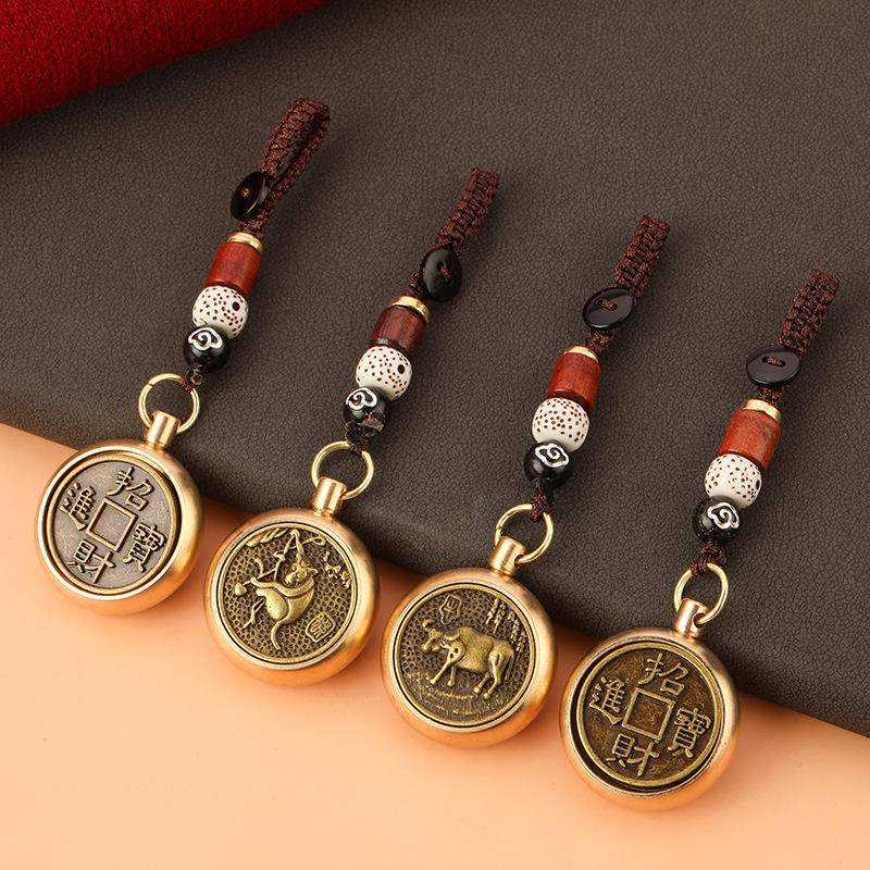 Buona fortuna Fengshui metallo Spinner portachiavi 2023 coniglio anno portachiavi cinese 12 segno zodiaco cane drago cavallo auto portachiavi regali