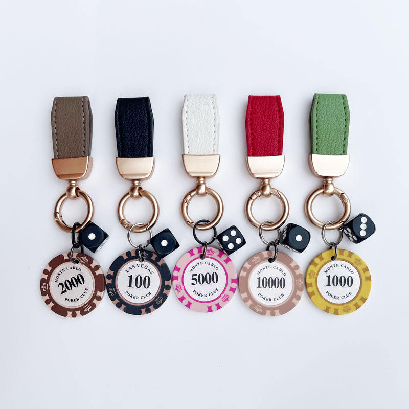 Portachiavi con Fiches da Poker Portafortuna con Ciondoli a Forma di Dado per Coppie, Ciondolo per Borsa o Zaino, Regalo Portafortuna in Lega di Zinco