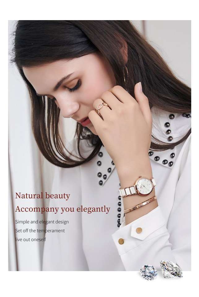 Orologio con Cristalli a Buon Prezzo Regalo per Donna Impermeabile Oro Rosa Orologi da Polso da Donna Cinturino in Ceramica Bracciale da Donna di Alta Qualità