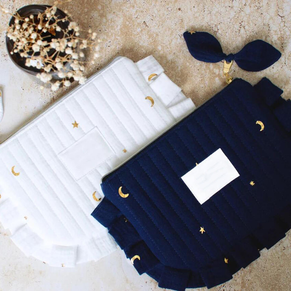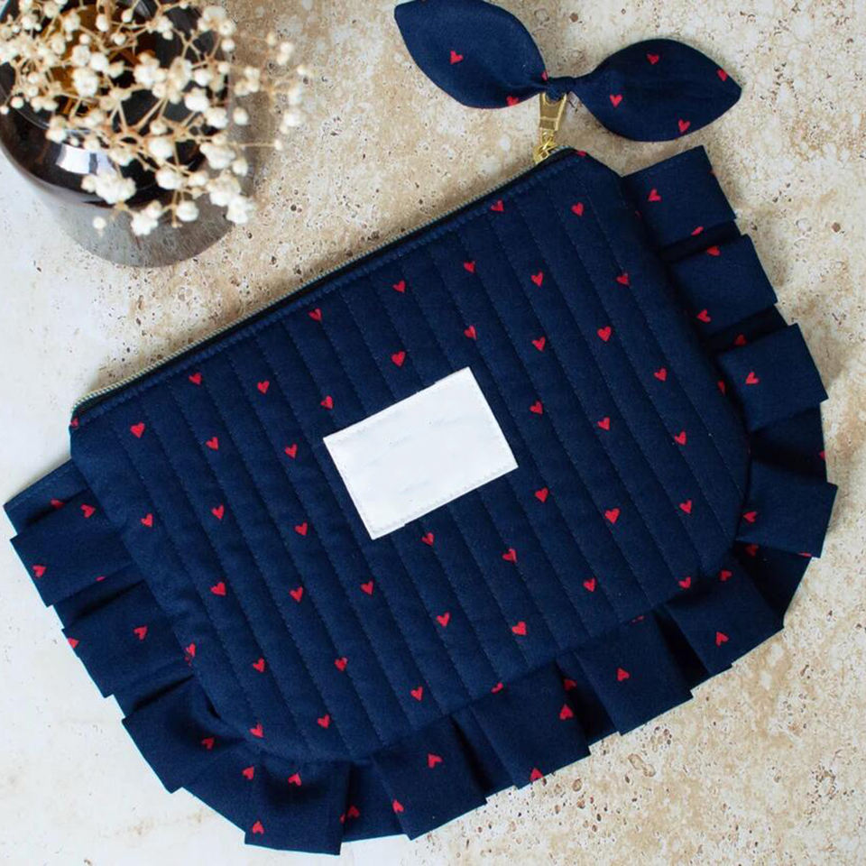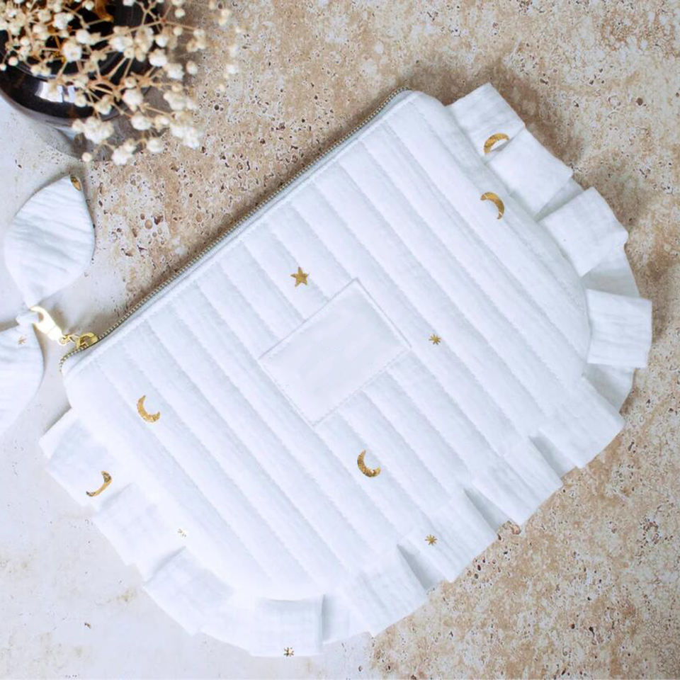 Borsa Cosmetica in Doppio Cotone Trapuntato con Volant e Decorazioni Pieghettate, Accessorio da Viaggio a Buon Prezzo
