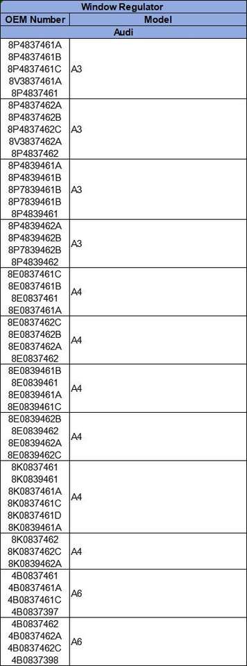 | AUDI | A3 | 2003.07-2009.05 | 3.2 V6 quattro (184KW,250PS) |