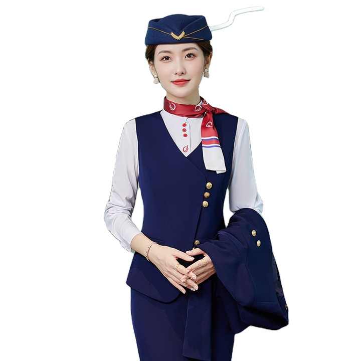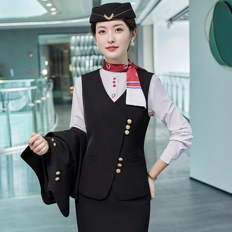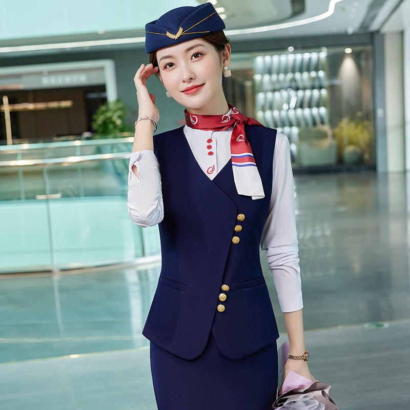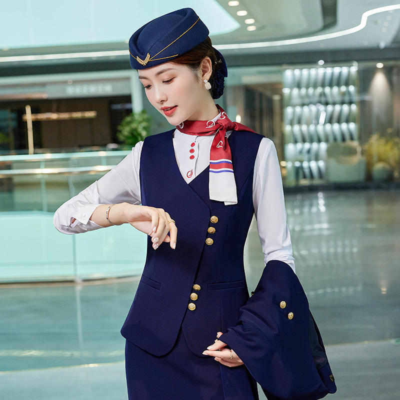 Uniforme da Hostess di Alta Qualità con Logo Personalizzato, Gilet, Pantaloni e Gonna con Cappello per Assistenti di Volo