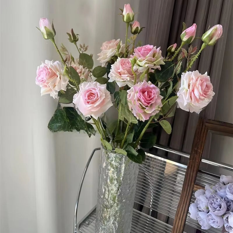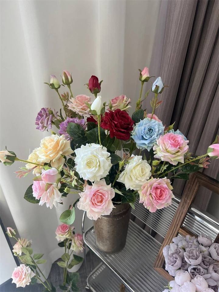 Buona qualità fiore finto giardino rosa rosa rosa rosa rosa fiore artificiale per decorazione festa di nozze