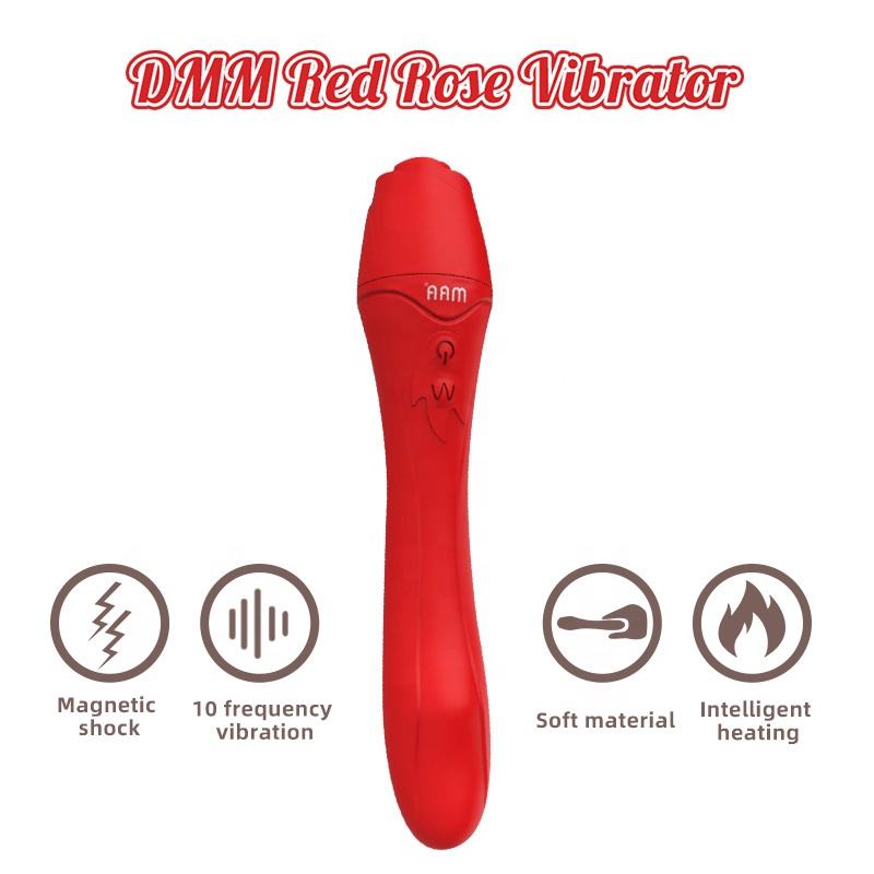 Vibratore a Forma di Rosa Riscaldante di Alta Qualità per Donne, Massaggiatore per Clitoride e Punto G, Giocattolo Sexy in Silicone Morbido Rosso