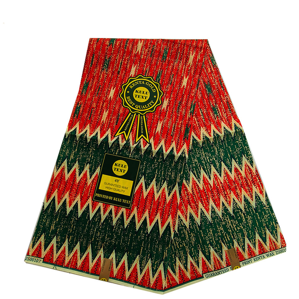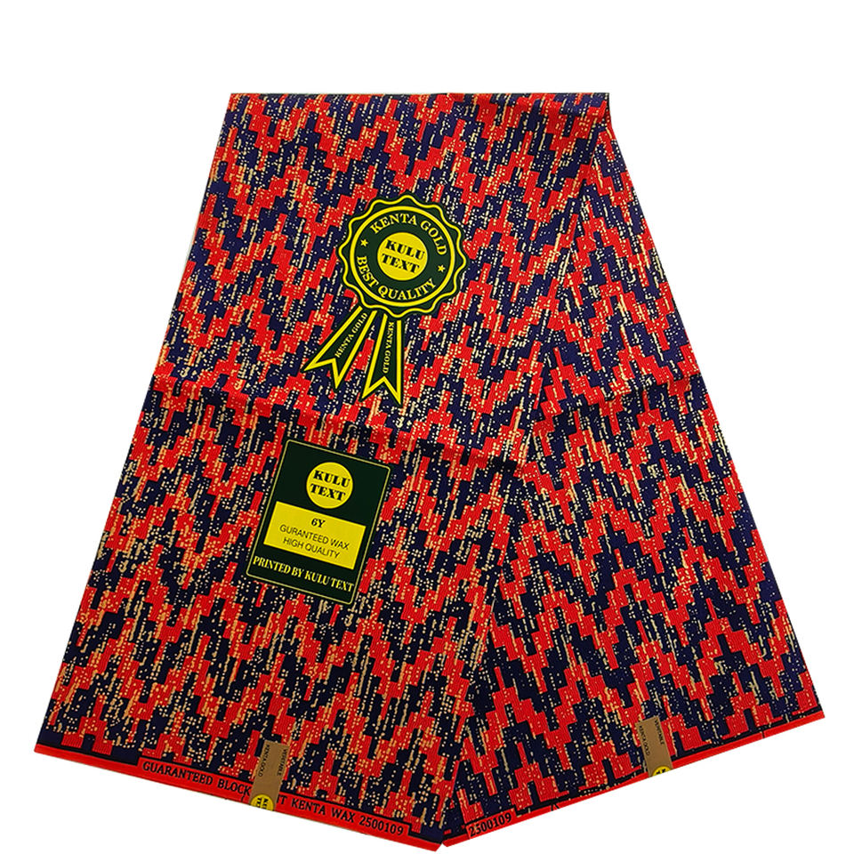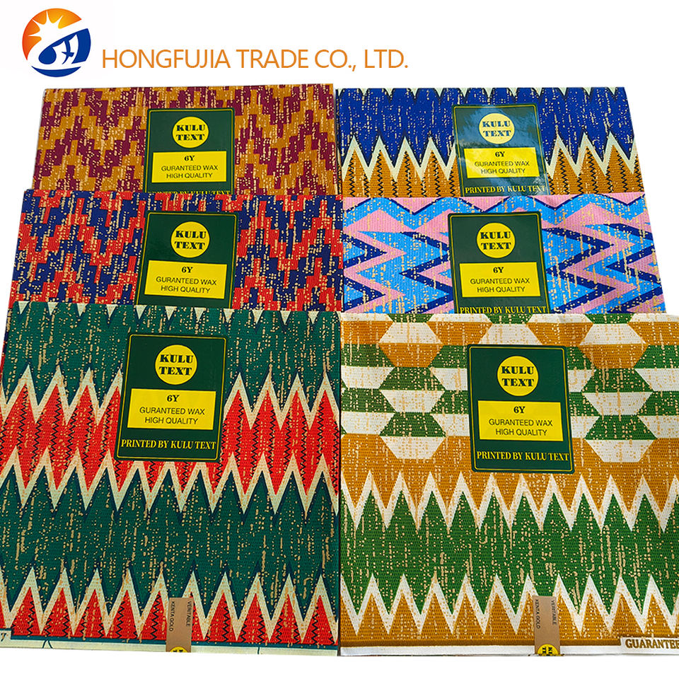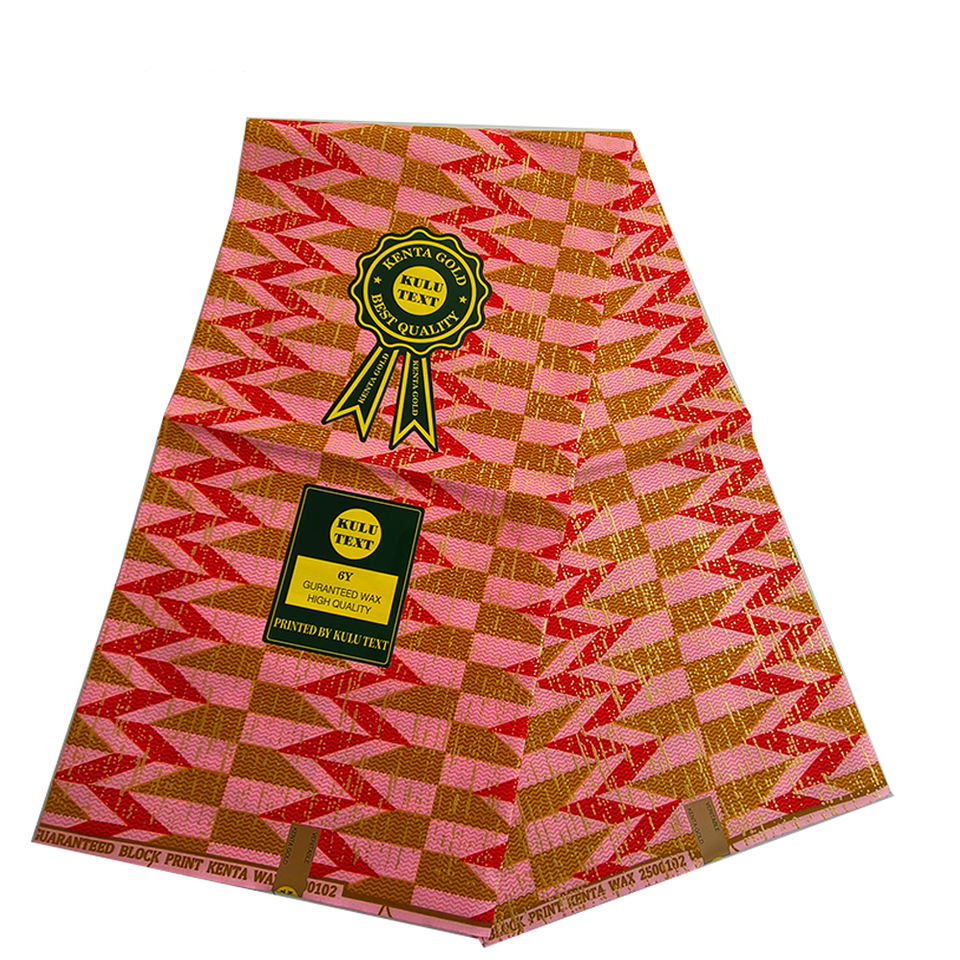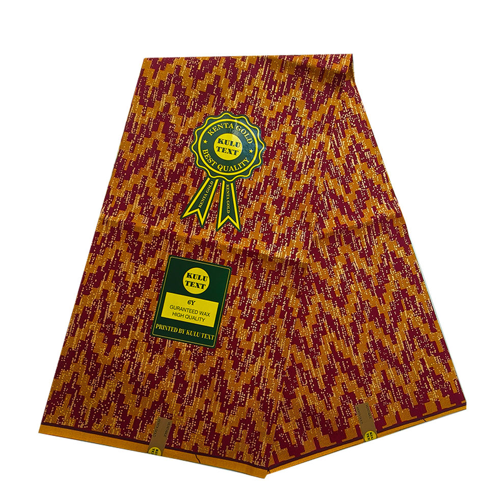 Tessuto in Cotone Organza Stampato Kente di Alta Qualità, 6 Iarde, Peso Medio, per Abbigliamento, Tessuto Cerato Dorato