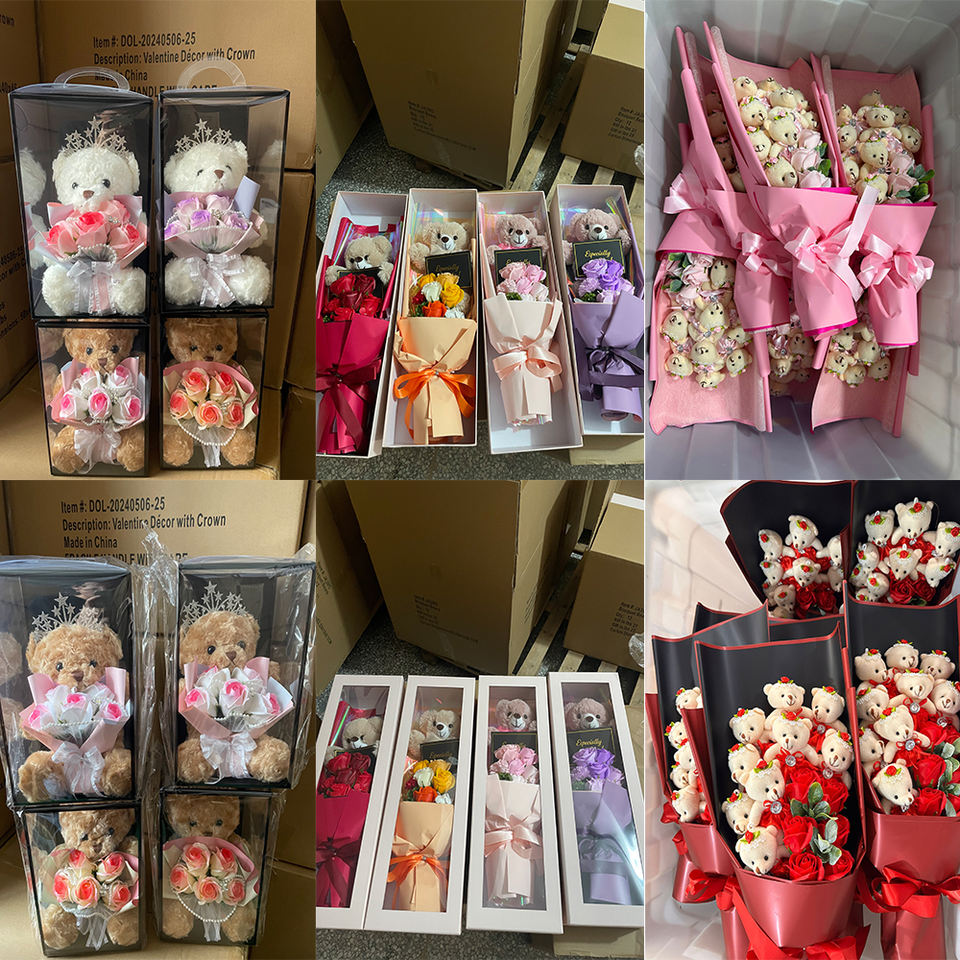 Nome del prodotto:Orsetto di peluche carino per San Valentino con bouquet di fiori