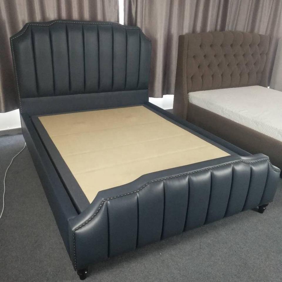 Letti in Legno di Alta Qualità Misura King Size con Testiera Alta e Morbida in Tessuto Vellutato