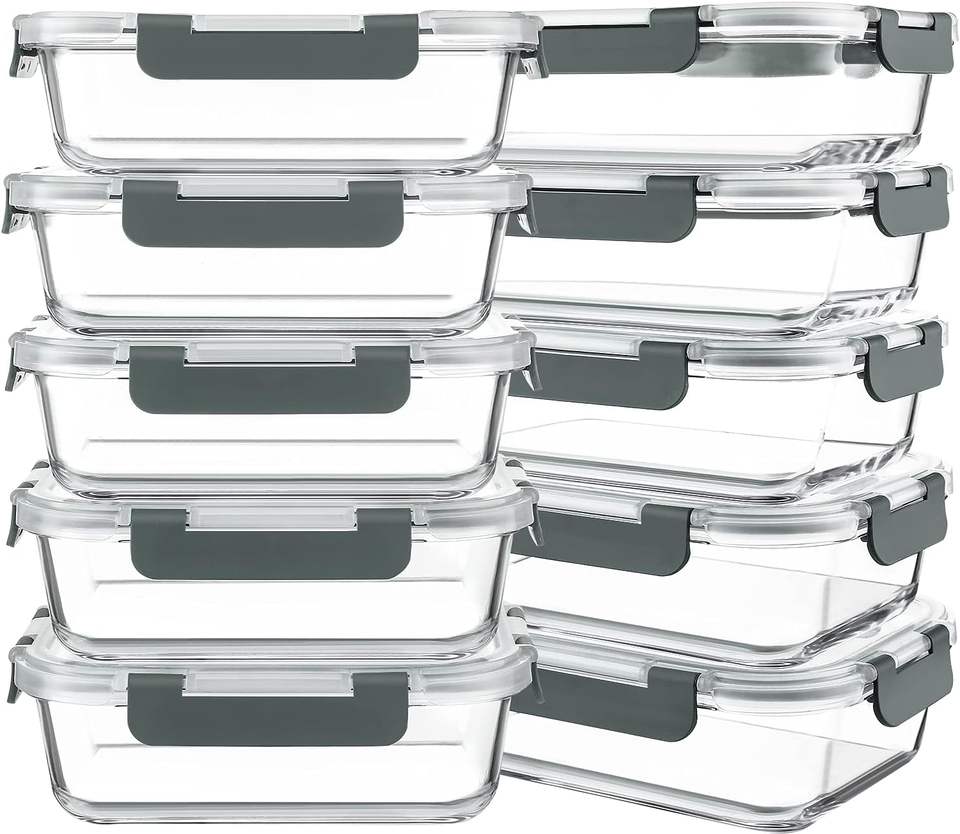 Buona vendita 10 confezioni da 30 once contenitori di vetro per la preparazione dei pasti contenitori per alimenti in vetro con coperchi ermetici per il pranzo Bento scatole