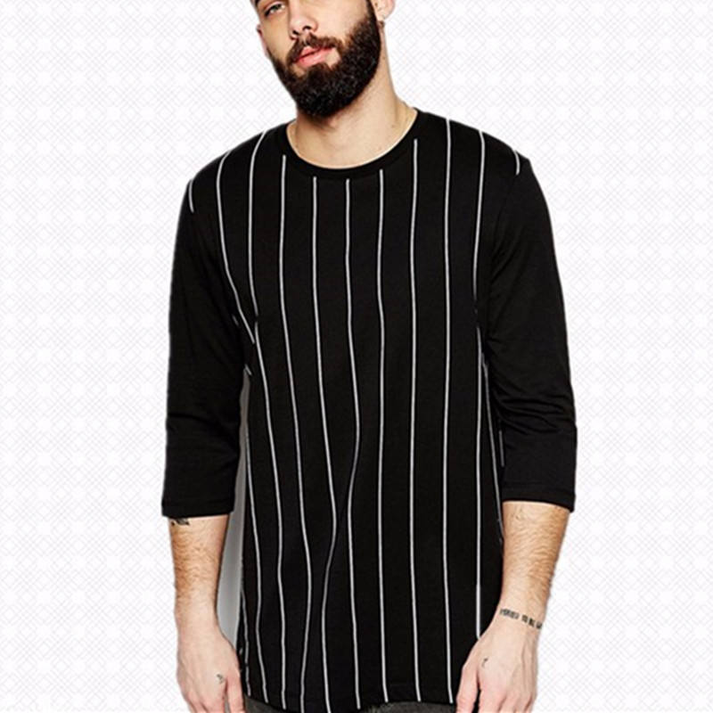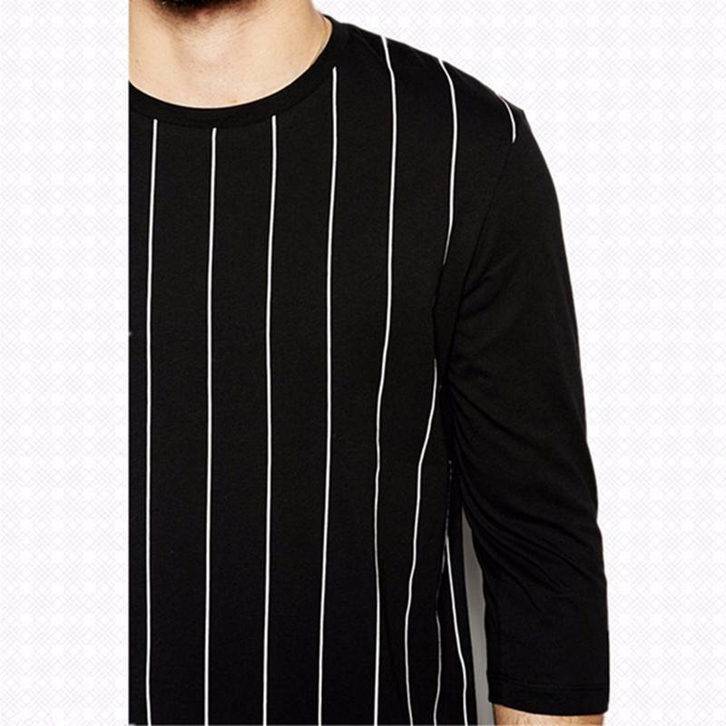 Buona vestibilità Slim in tessuto di cotone 100 a righe verticali di buona qualità a maniche lunghe magliette morbide per t-Shirt a manica lunga tinta in filato da uomo