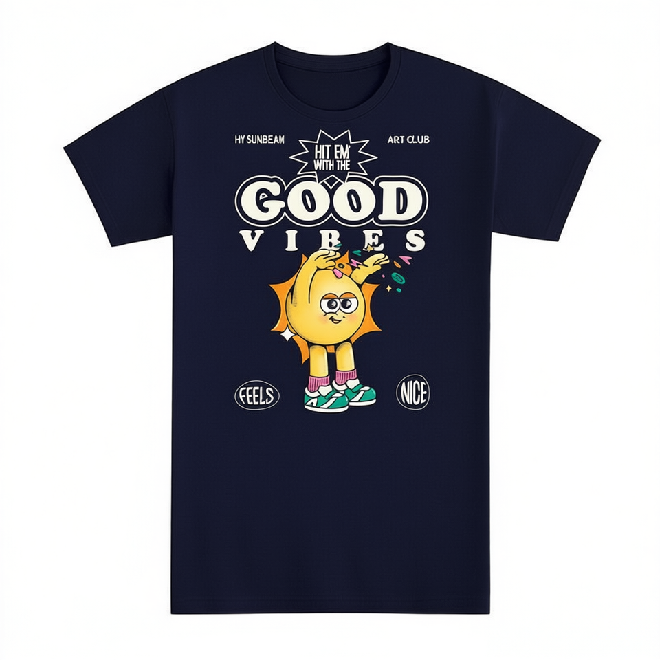 T-Shirt Good Vibes Blu Scuro Unisex Abbigliamento Promozionale