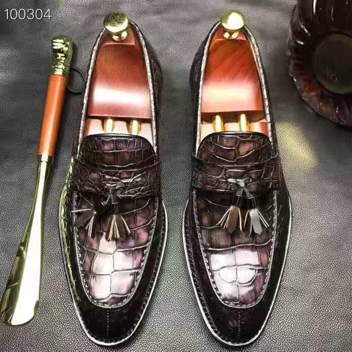 Eleganti Mocassini Goodyear in Vera Pelle con Stampa Coccodrillo, Punta Affusolata, Slip-On, Calzature Maschili Raffinate