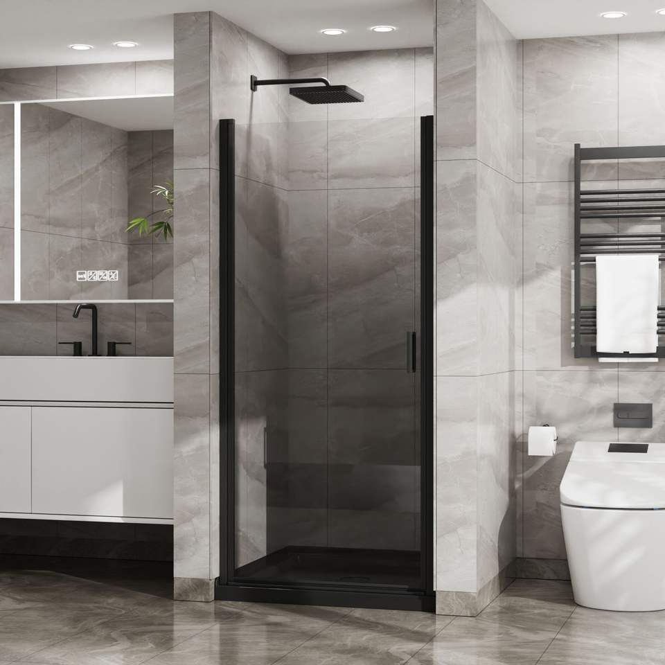 Goodyo 34 "x 72" nero finitura Pivot porta doccia 1/4 pollici di spessore vetro temperato Swing Design Semi-Frameless