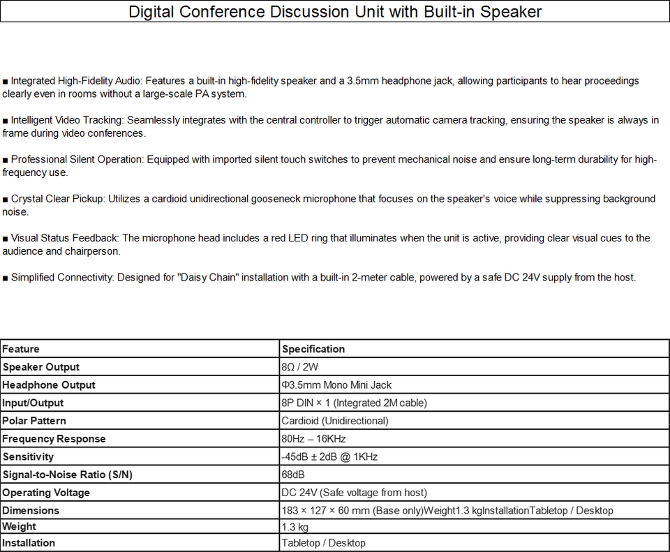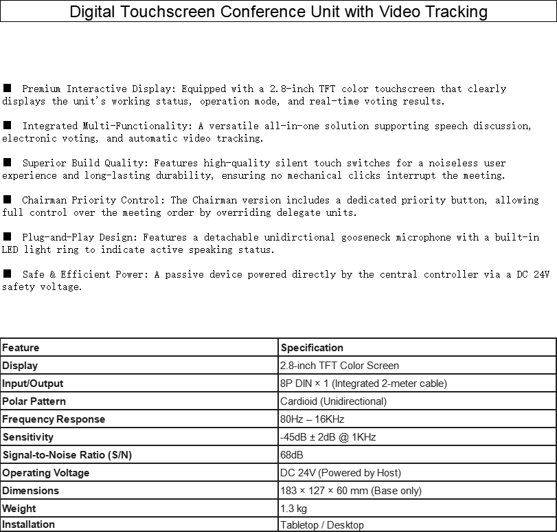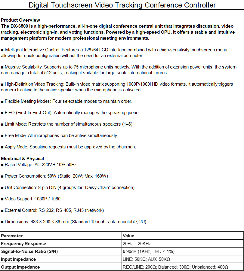 Sistema di Conferenza Digitale Professionale Gooermi con Tracciamento Video HD e Unità di Voto Touchscreen - Serie DX-6500