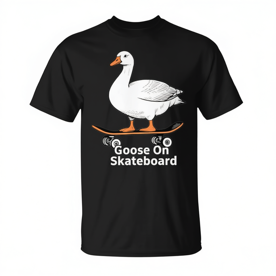 T-shirt a maniche corte con scollo rotondo Goose on Skateboard Silly Animal per gli amanti delle oche, skater, unisex, per adulti