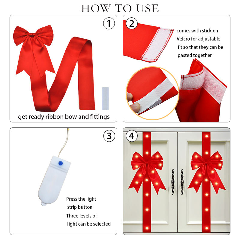 Gordon nastro grande nero rosso fiocco di natale con nastro magico cucito porta fiocco