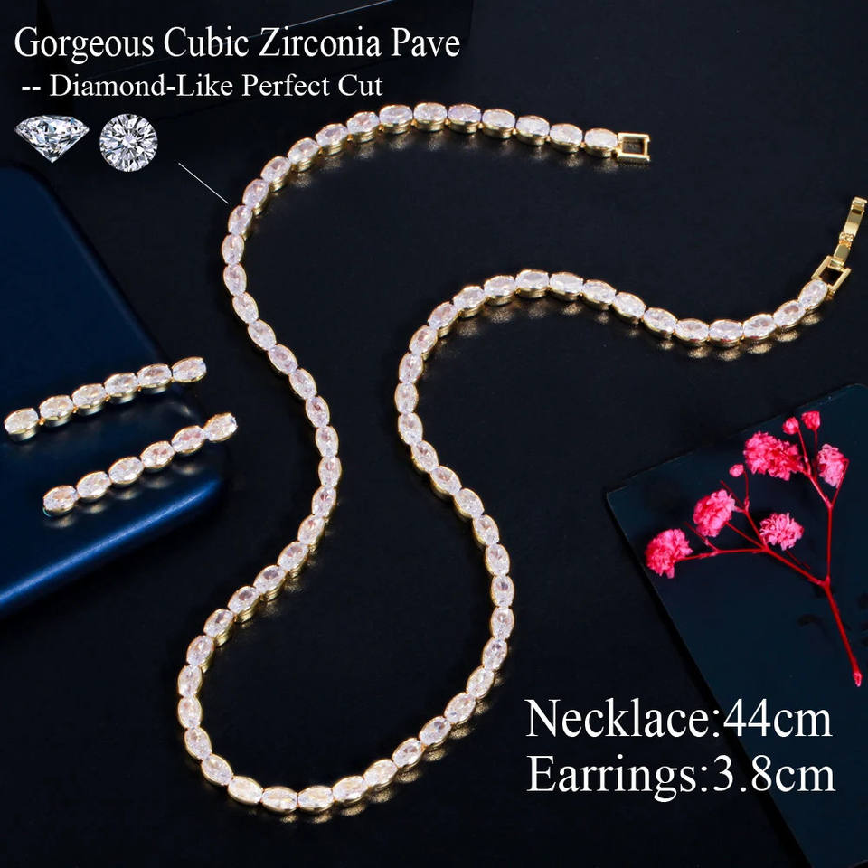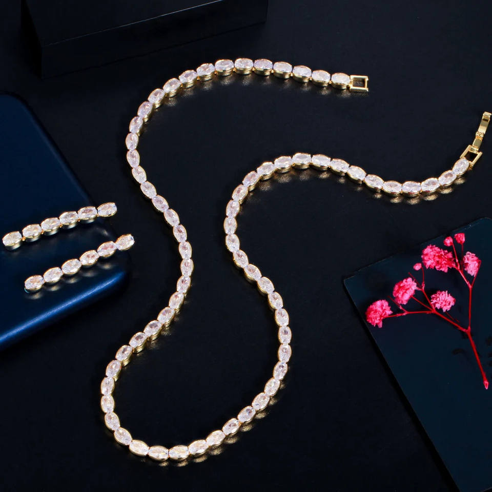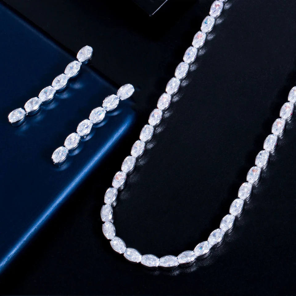 Splendida collana e orecchini di zirconi cubici di forma ovale
